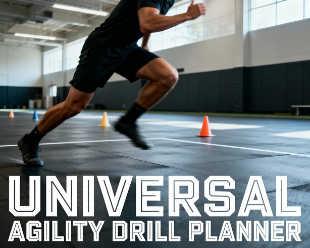 The Universal Agility Drill Planner develops the ability to accelerate, decelerate, and redirect force efficiently through evidence-based movement sequencing and energy-system design. Built on principles of reactive neuromuscular training, this program improves coordination, proprioception, and decision-speed — turning raw movement into game-ready control.