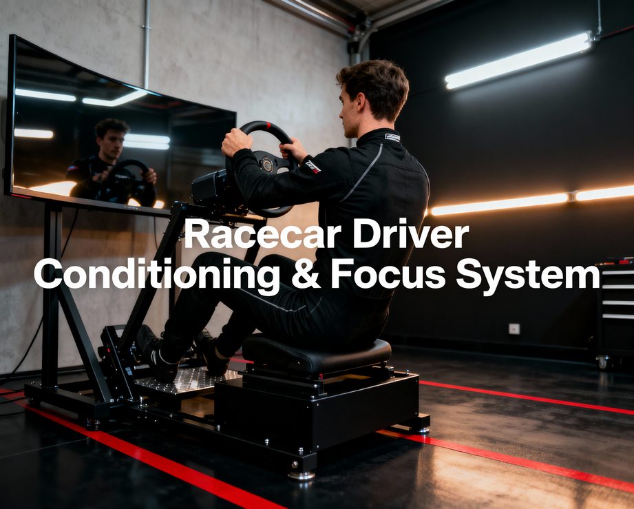 Precision, endurance, and control define success behind the wheel. The Racecar Driver Conditioning & Focus System builds the physical and cognitive foundation every driver needs to perform under heat, g-force, and fatigue. Informed by FIA driver fitness research and guided by NSCA and ACSM evidence-based conditioning frameworks, this program integrates neck and core stability, grip strength, aerobic conditioning, and reaction training to enhance control and resilience under race-day stress.